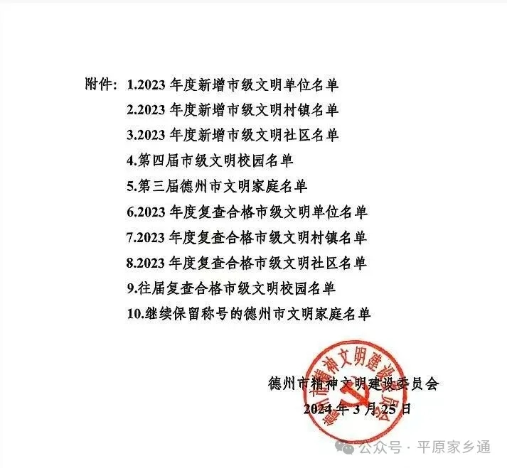 近日,德州精神文明建设委员会公布德州市“精神文明单位”公示名单,平原华达实业有限公司榜上有名!